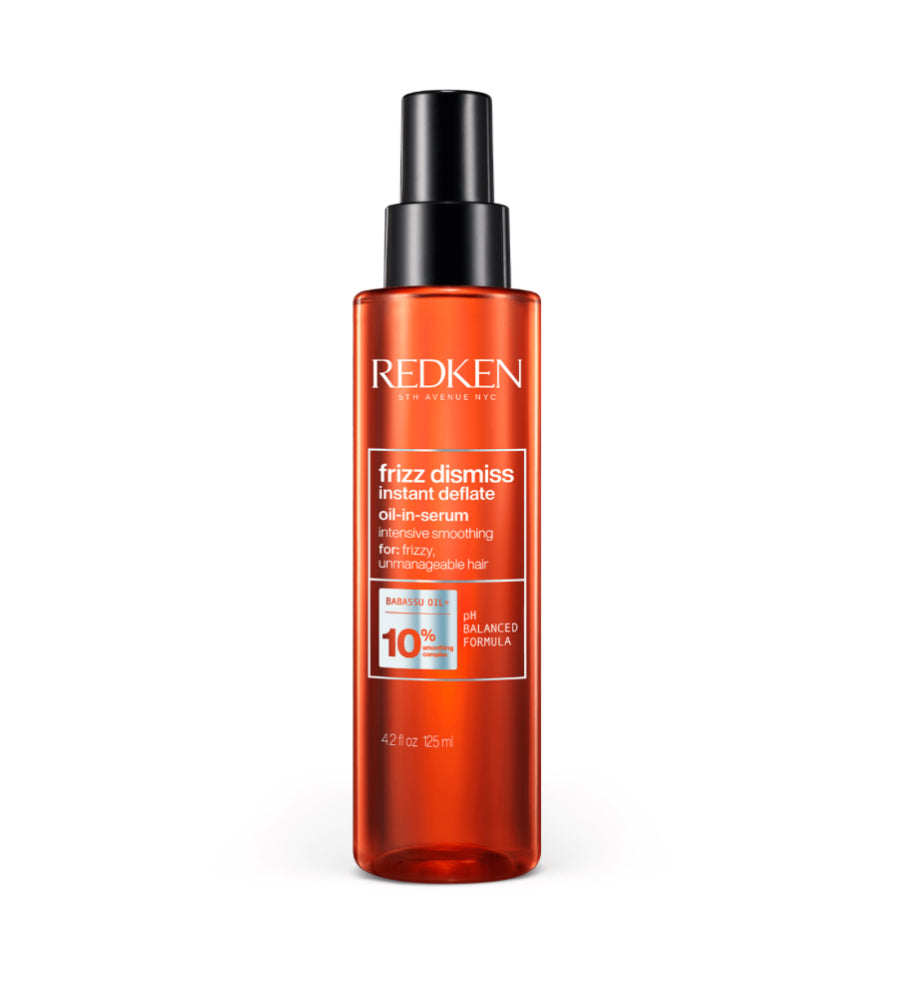 Prescribed for frizz protection, the Redken Leave-in hair smoothing serum moisturizes and detangles hair while providing smoothness, manageability, and shine for medium to maximum frizz control. Experience up to 82% less frizz in 24 hours after one use of Frizz Dismiss Shampoo, Conditioner and FPF 30 Instant Deflate.