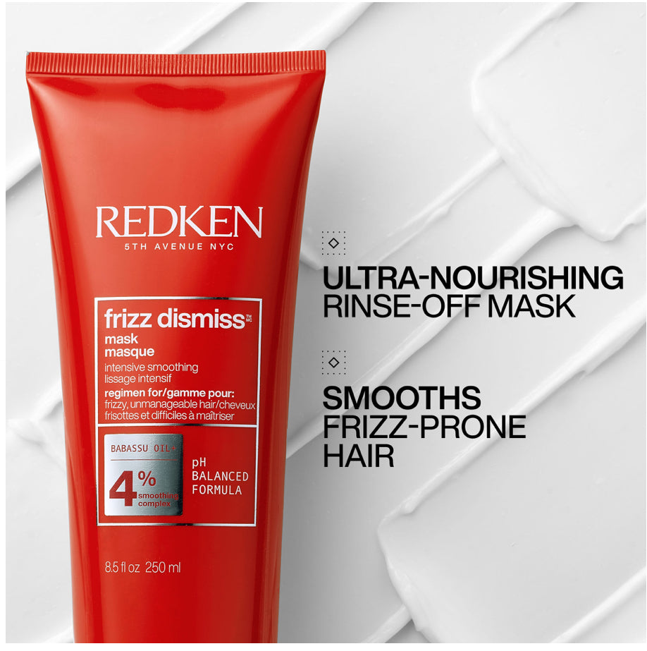 Prescribed for frizz protection, the sulfate-free Redken Frizz Dismiss Hair Mask provides intense smoothing for all hair types to moisturize, soften, and hydrate unruly hair. Formulated with Redken's Smoothing Complex containing sustainably-sourced Babassu Oil that works to moisturize, detangle, and protect hair from frizz while providing enhanced smoothness and frizz control.